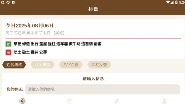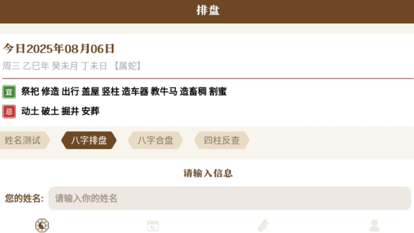 2、可进行八字排盘,输入你的姓名后就能查询。