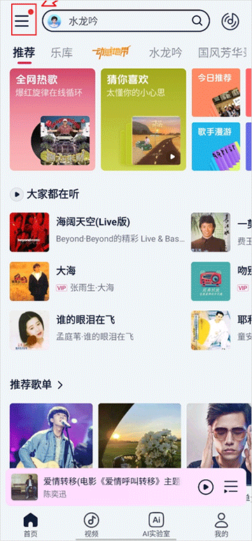 1、在首页点击最左上角的菜单(三条横杆图标)